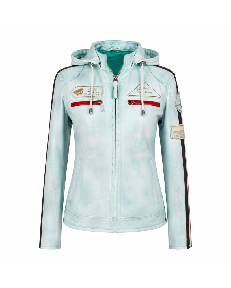 Veste en cuir avec patchs et capuche amovible BOLLWOM