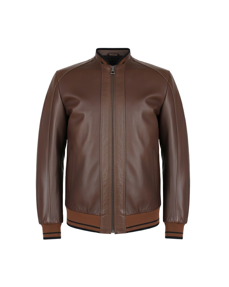 Veste en cuir avec lignes de détails textiles MODÈLE COTA