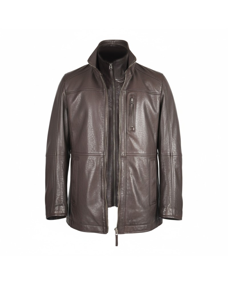 Veste en cuir avec double fermeture éclair amovible BERGE
